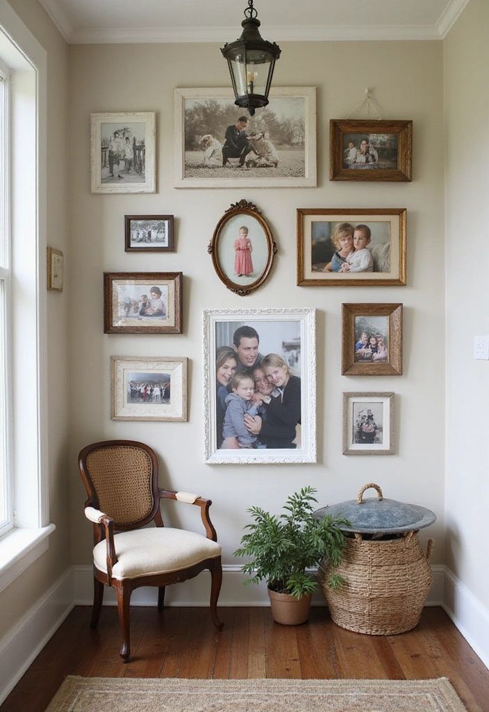 Incorporating family photos into your entryway design adds a personal touch that makes your space feel lived-in and warm. Use vintage frames to showcase cherished memories or create a gallery wall that tells your family’s story. Position the photos above a console table or along the entrance wall for easy viewing.