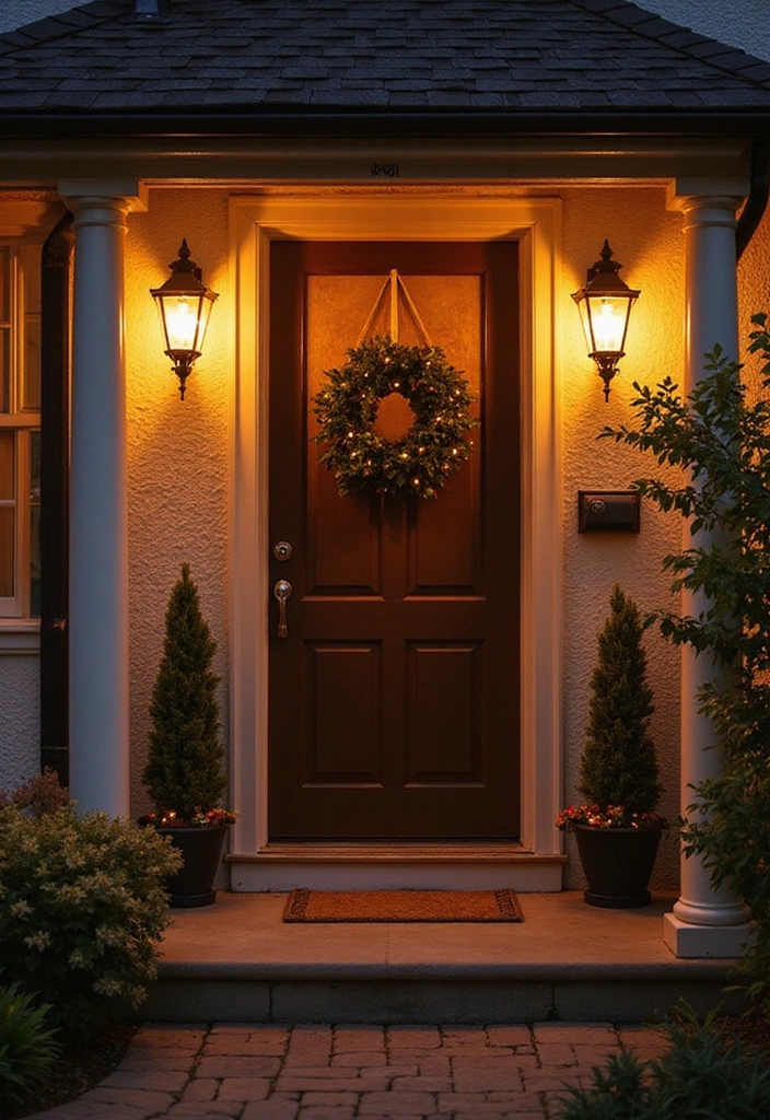 Consider using sconces flanking the door for an elegant touch. Installing dimmable fixtures will allow you to adjust the brightness for different occasions – bright for daytime, soft for evening gatherings. Adding candles on a small table or near the door can also bring a warm ambiance.