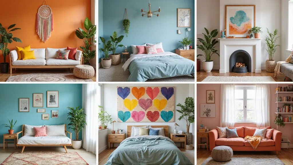 – Choose a few impactful pieces rather than cluttering walls with many small items.