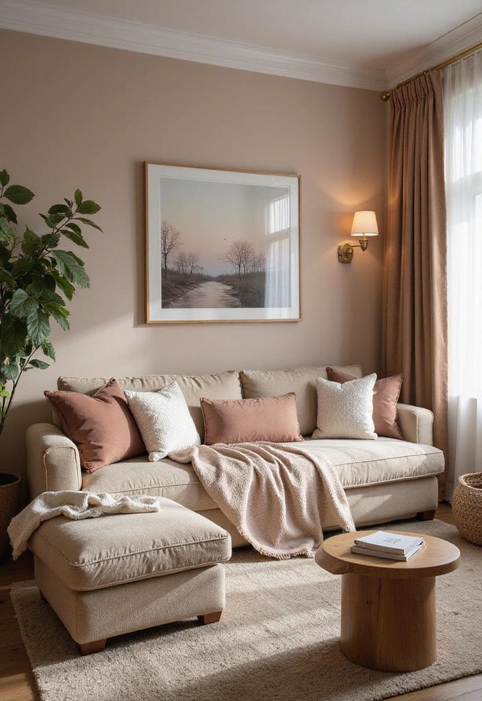 The colors you choose for your living room can significantly influence its coziness. Soft, muted tones like blush, beige, or dusty blue can create a serene atmosphere that feels warm and inviting. You can also opt for deeper jewel tones, such as emerald green or navy, which can add sophistication while still maintaining that snug vibe.