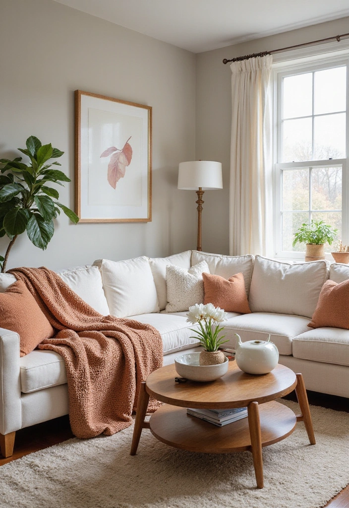 Consider using neutral foundational pieces so you can easily switch out accessories like cushions, artwork, or decorative items. Seasonal scents through candles or diffusers can also enhance the cozy vibe, making your living room a delightful space to be in throughout the year.