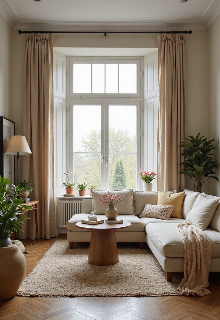 Airy curtains can add a soft, romantic touch to your living room while providing a sense of separation if needed. Opt for light, flowing fabrics that allow natural light to filter through, creating a bright and spacious atmosphere. Sheer curtains in soft colors can help maintain privacy while keeping the space airy and open.